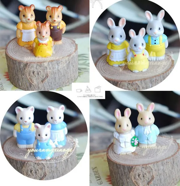 wholesale foreign original bulks 100pc forest animal family mini cute kawaii kitten bunny bear doll